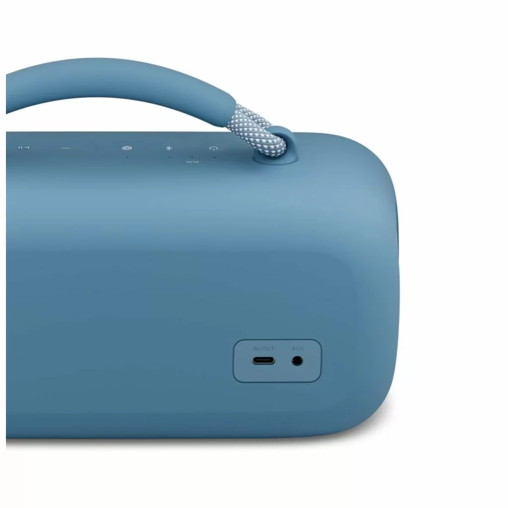 Колонка SoundLink Max шириной 26,47 см, высотой 12,01 см, глубиной 10,49 и весом чуть менее 2,27 кг имеет съемную веревочную ручку, поэтому колонку удобно переносить и брать с собой. Дополнительно доступен веревочный плечевой ремень, а также сменные ручки с яркими цветовыми комбинациями.