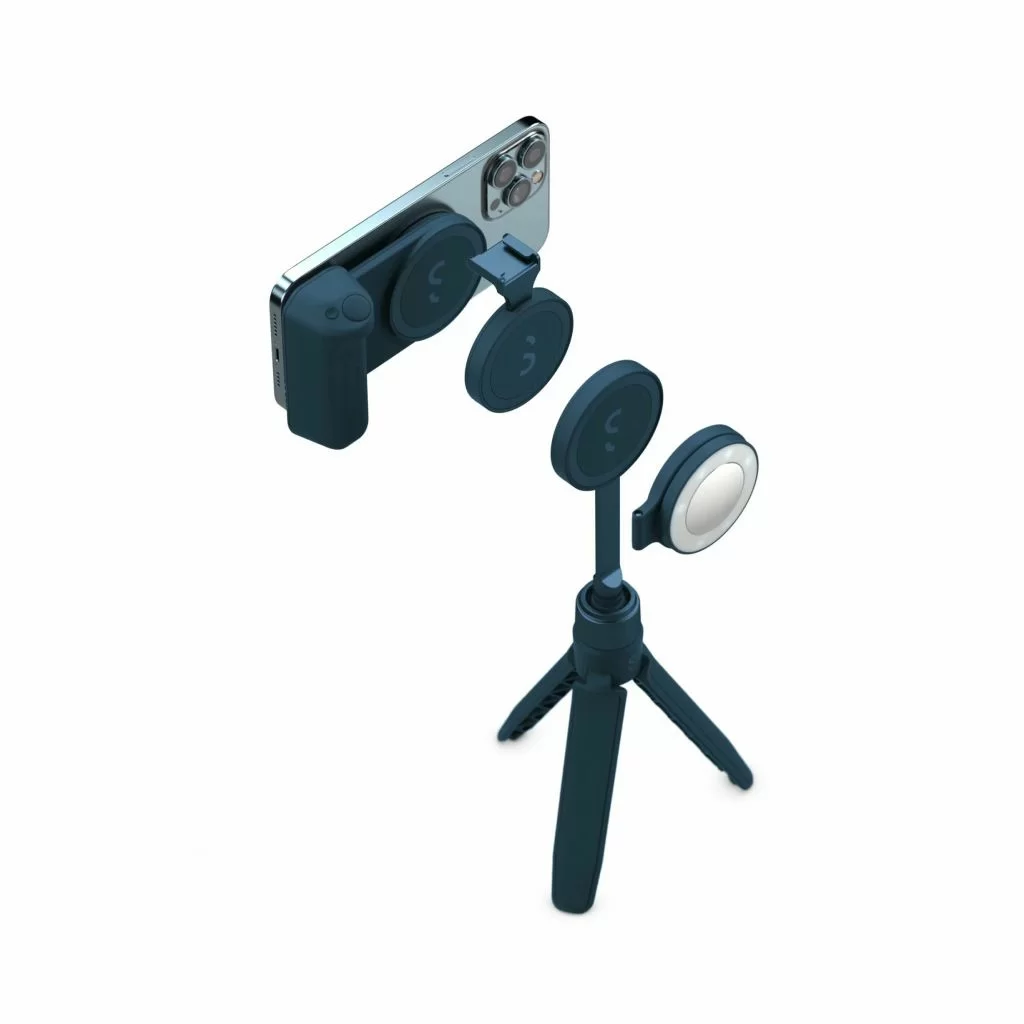 В этот набор для всех увлеченных создателей входят три компонента. Каждый из них можно использовать отдельно или легко соединять в любой комбинации с помощью магнитов. Все аксессуары совместимы с MagSafe, но если у вас его нет, ничего страшного. В комплект входит магнитная наклейка, которую можно прикрепить к задней панели практически любого телефона и имитировать эту функцию iPhone.