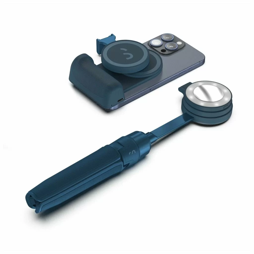 Итак, что вы найдете в этом наборе? Крепление SnapGrip, которое превращает ваш телефон в более эргономичную камеру. Небольшой кольцевой светодиодный светильник SnapLight, который обеспечит идеальное освещение сцены. Третьим на вечеринке является SnapPod, мини-штатив и селфи-палка в одном флаконе.