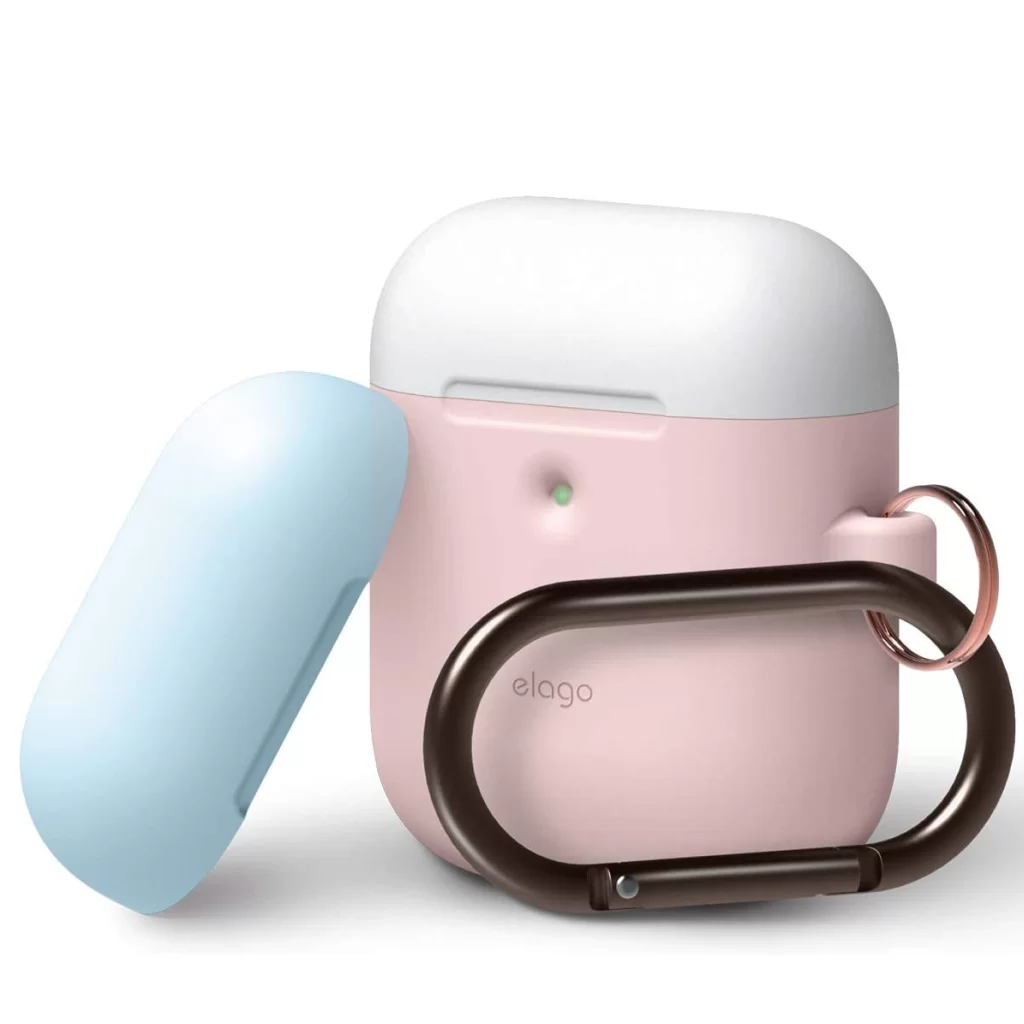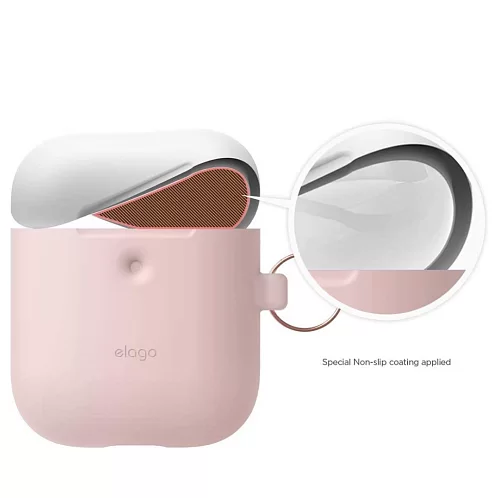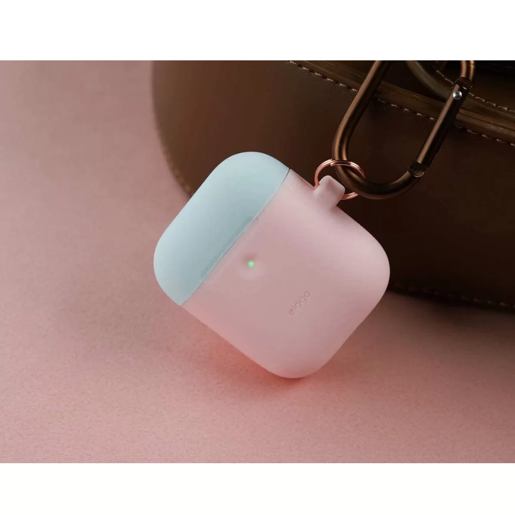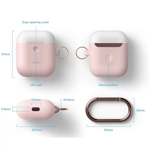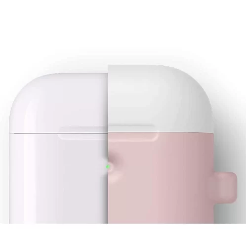 Чехол Elago DUO Hang Wireless case для AirPods, карабин, силикон, розовый с крышками белый и голубой