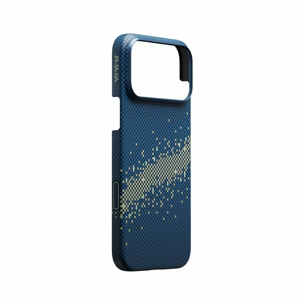 Pitaka Ultra-Slim Cace — ультратонкий и невероятно лёгкий чехол, созданный для ценителей безупречного стиля и высоких технологий. Изготовлен из прочного арамидного волокна, которое надёжно защищает ваш iPhone, сохраняя его изящный дизайн. Полная совместимость с MagSafe обеспечивает быструю беспроводную зарядку и идеальное крепление аксессуаров.