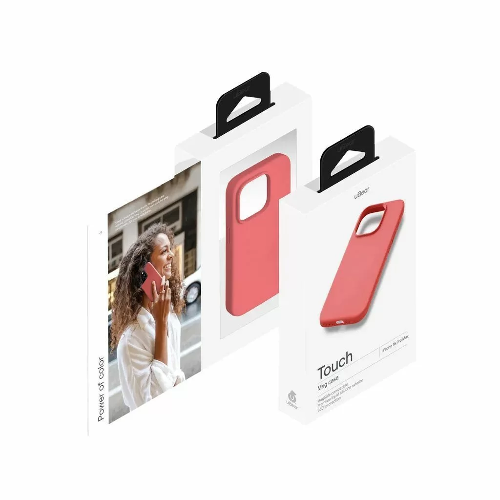 Чехол uBear Touch Mag Case для iPhone 16 Pro Max, силикон, софт-тач, коралловый