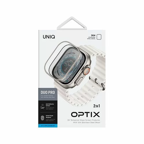 Защитное стекло Uniq OPTIX DUO PRO Anti-reflective со стальной рамкой для Apple Watch Ultra 49 мм