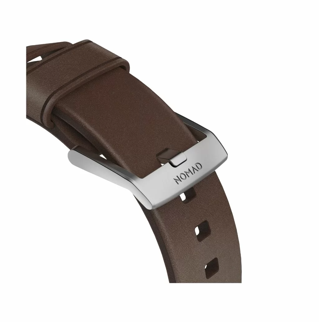 Ремешок Leather Strap от Nomad - разработанный, чтобы придать вашим интеллектуальным часам классический, но смелый новый вид Modern Strap изготовлен из минимально обработанной кожи растительного дубления из одной из старейших кожевенных мастерских Америки и нержавеющей стали. Качественная Horween кожа со временем создает патину, создавая богатый уникальный дизайн. Ремешок приятный на ощупь, регулируется под разный охват запястья.