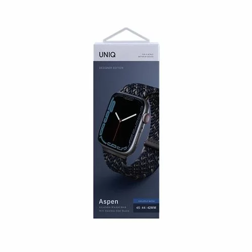 Ремешок Uniq ASPEN для Apple Watch 49/45/44/42 mm, плетеный, синий обсидиан