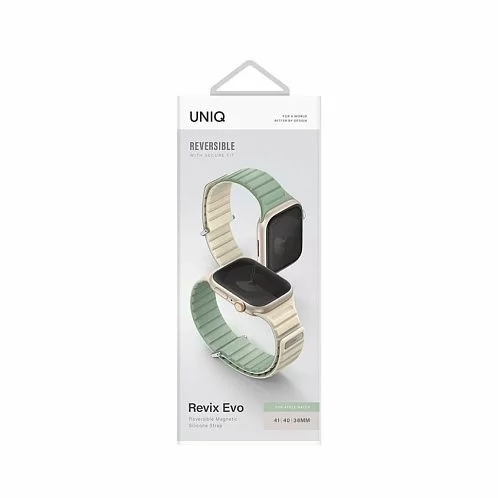 Ремешок Uniq Revix EVO Premium для Apple Watch, 41/40/38 мм, двухсторонний, мятный/бежевый