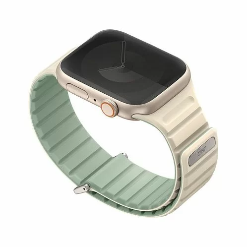 Двусторонний ремешок из мягкого силикона Uniq REVIX EVO для Apple Watch с размером корпуса 42/41/40. Вы можете легко поменять внешние стороны ремешка в зависимости от своего стиля и предпочтений. Фиксируется на руке с помощью удобной магнитной застежки, выдерживает нагрузку до 1.2 кг. Возможность регулировки длины за счет встроенных магнитов обеспечивает точное соответствие размерам руки. Металлическая стальная застежка дополнительно фиксирует устройство на запястье, позволяя не беспокоиться об утере даже при занятиях спортом.