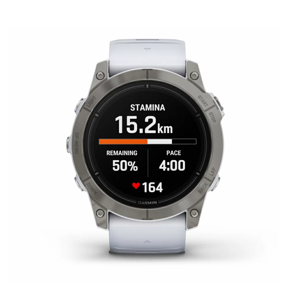 Надежная конструкция спортивных часов включает яркий AMOLED-дисплей 1,4” с защитой от появления царапин, чувствительный сенсорный экран, традиционные кнопки и корпус 51 мм из усиленного волокнами полимера. Кольцо вокруг дисплея и задняя крышка выполнены из титана. Часы тестируются на соответствие военным стандартам США по температурному и ударному воздействию, а также по водоустойчивости.