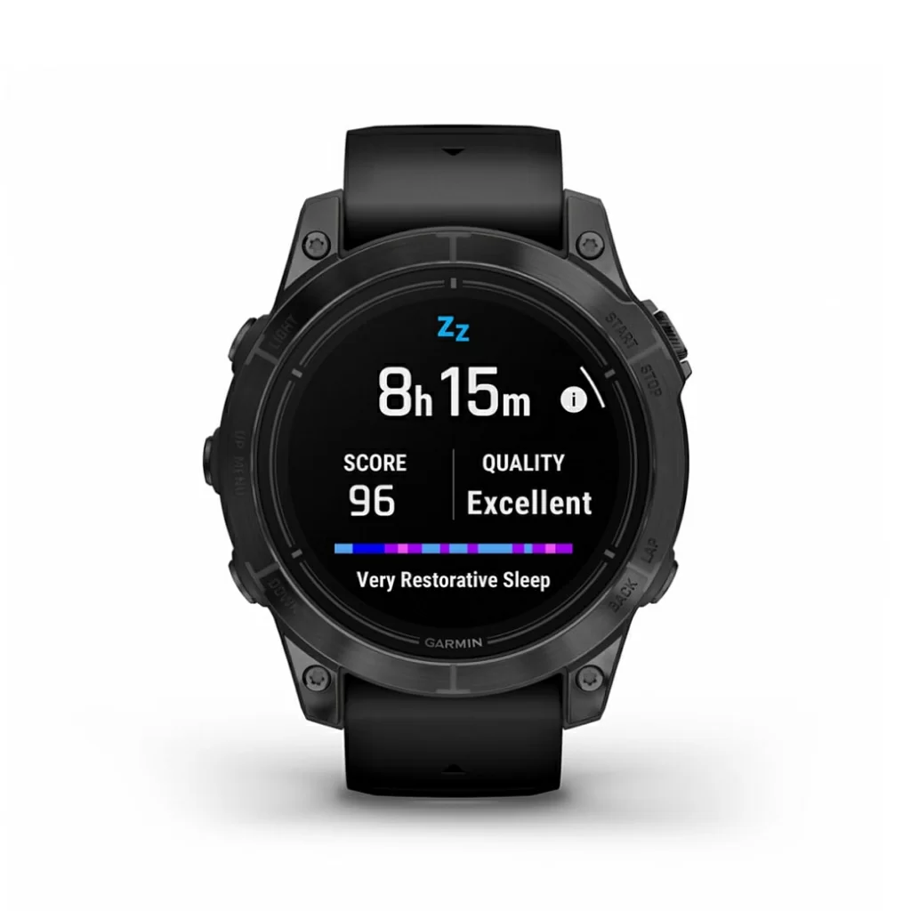 Премиальные смарт-часы Garmin EPIX PRO (Gen 2) нового поколения, с стеклом Corning® Gorilla®, ярким, постоянно включенным AMOLED-дисплеем и стальным ободком вокруг циферблата отлично смотрятся и в офисе, и в спортивном зале, и в путешествии. Чтобы поменять имидж, достаточно купить и заменить на часах силиконовый ремешок, или выбрать браслет из металла, натуральной кожи или замши в соответствии с вашим стилем. Помимо спортивных приложений часы имеют богатый арсенал функций, помогающих контролировать состоянием здоровья - измеряют частоту пульса и дыхания, сатурацию, уровень энергии, качество вашего сна и другие параметры. Важно отметить и срок работы умных часов epix от батареи - до 16 дней без подзарядки.