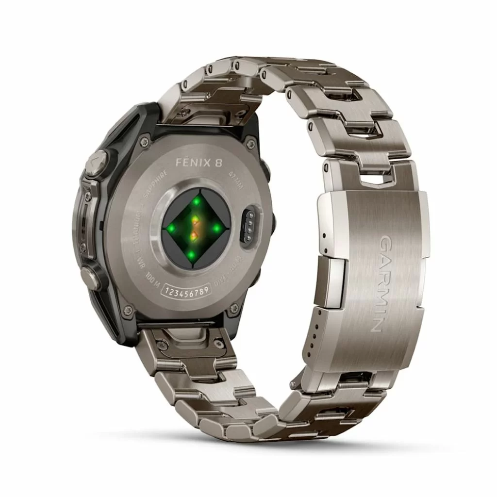 Garmin Fenix 8 — умные часы в титановом корпусе с поддержкой датчиков мониторинга здоровья, совместимы со смартфонами на ОС Android и iOS. Могут принимать звонки и сообщения. Есть функция голосового управления. С часами можно нырять в воду на глубину до 100 м.