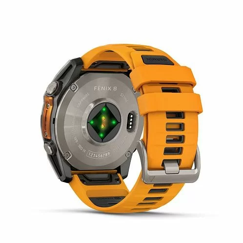 Умные часы Garmin Fenix 8 Sapphire AMOLED 51 мм, титан, ремешок - силикон, оранжевый/графит