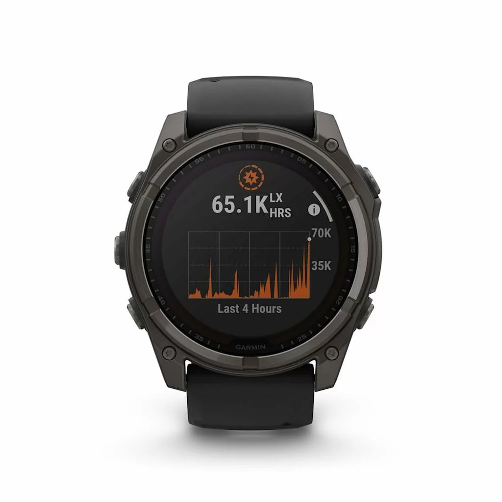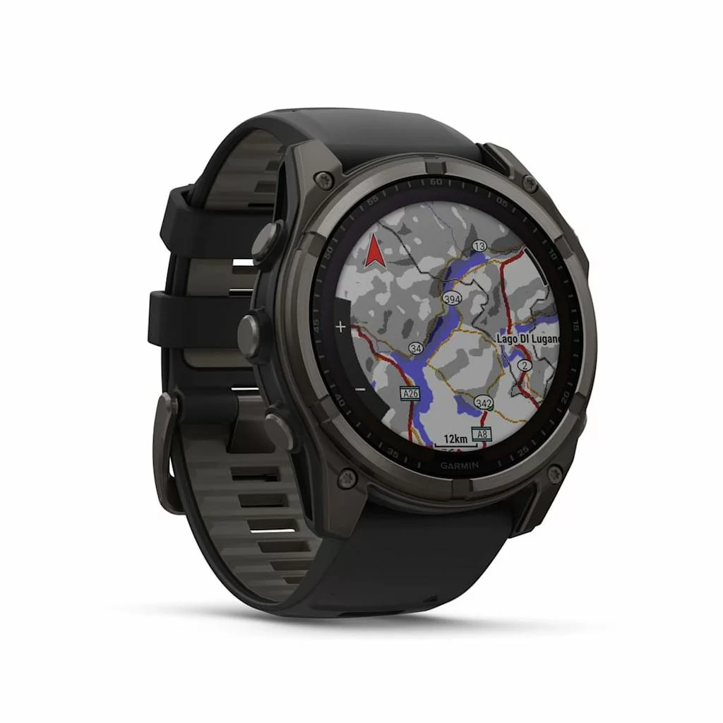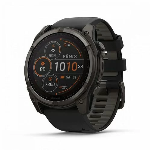 Умные часы Garmin Fenix 8 Sapphire Solar 51 мм, титан с DLC, ремешок - силикон, чёрный/серый