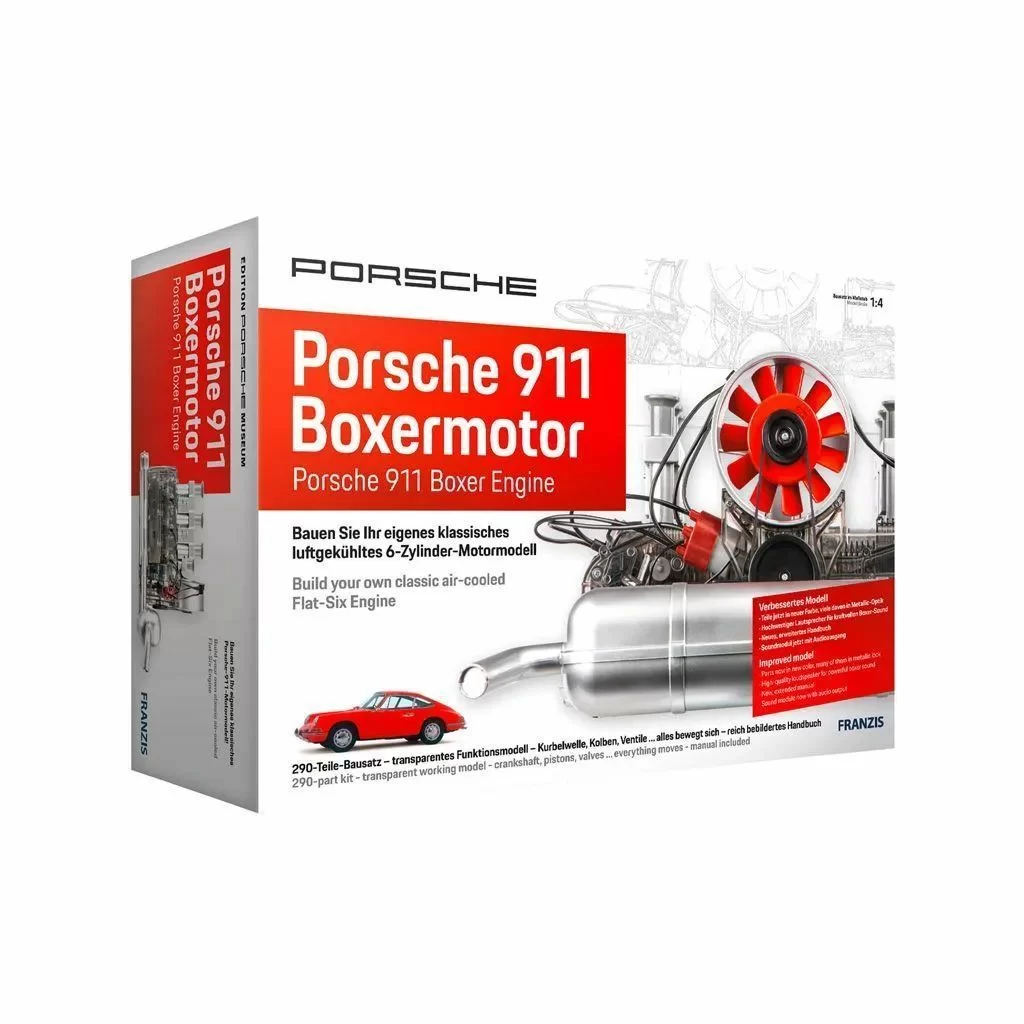 С помощью функциональной модели с винтовыми и штекерными соединениями сердце оригинального 911 становится осязаемым и особым личным опытом. Высококачественный комплект был изготовлен по оригинальным чертежам и состоит из 290 отдельных деталей, некоторые из которых подвижны.