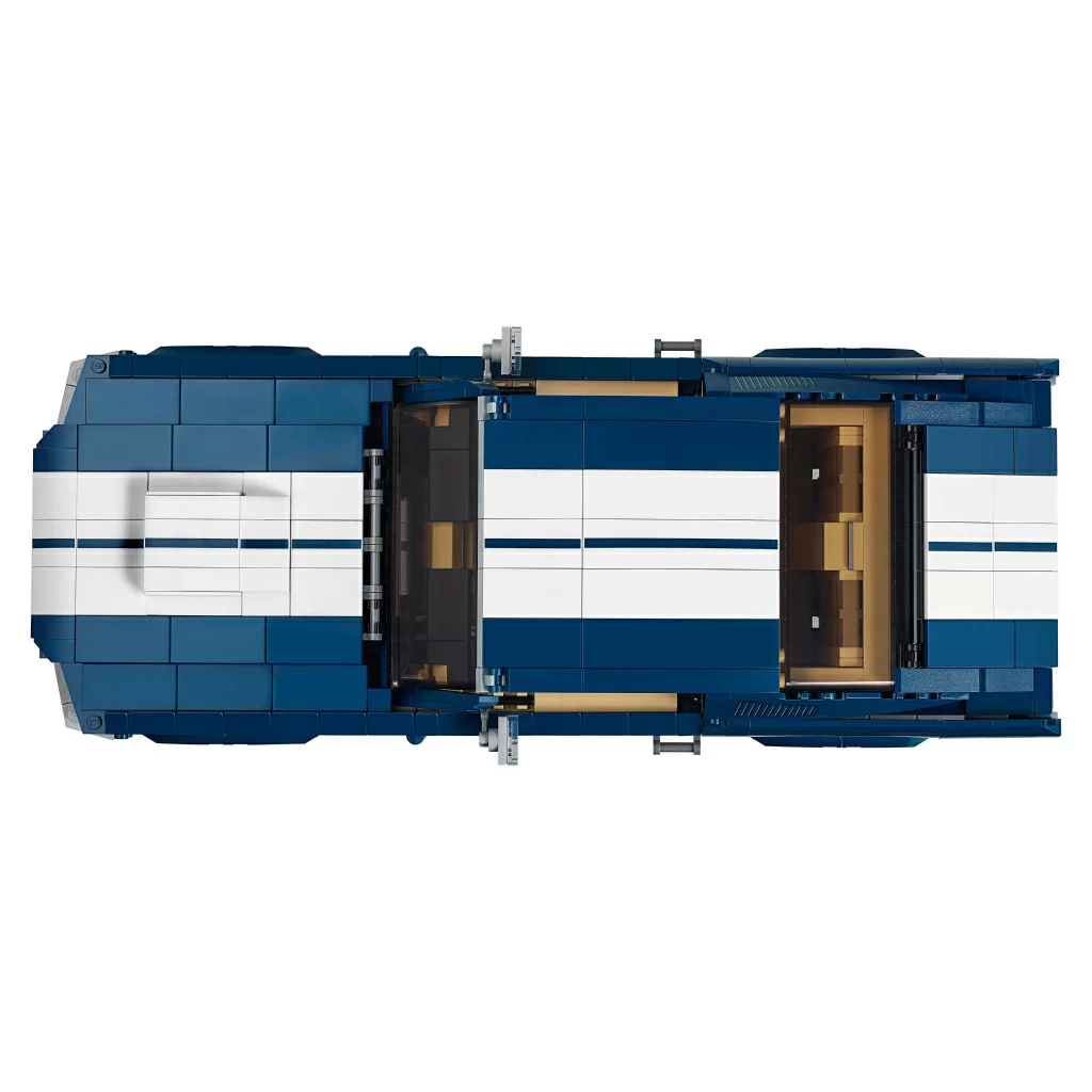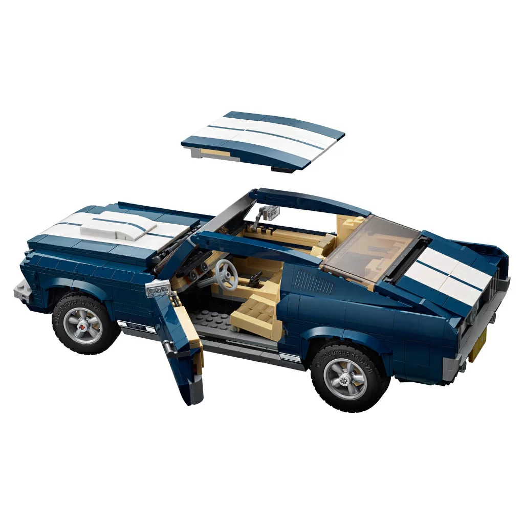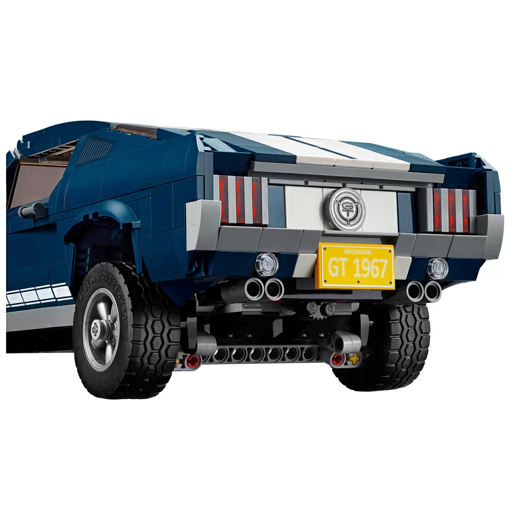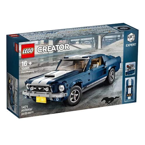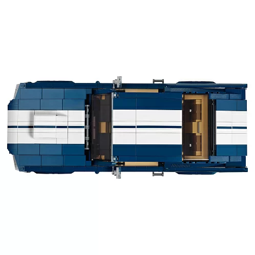 Конструктор Ford Mustang LEGO — это настоящая репродукция всемирно известного ретро автомобиля американской марки Ford 1960-ых годов. Воссоздай свою модель потрясающе красивого синего цвета со стильными белыми вставками в виде гоночных полос. Только ты решаешь, как прокачать свой гоночный ретро-кар. Поднять или опустить ось, добавить турбину или установить спойлер, чтобы придать ускорение своему автомобилю и быть непобедимым в гонках, решать тебе. Кроме того, ты также можешь продумать до мелочей дизайн салона: спортивные кресла, встроенная магнитола, гоночный руль. Под капотом спрятаны проработанный до мельчайших деталей двигатель 390 V8, аккумулятор, шланги и воздушный фильтр. Чтобы хорошо рассмотреть интерьер автомобиля с уютными сиденьями, радиоприёмником, коробкой передач, установленной посередине, и функционирующим рулевым колесом, открой дверцы или сними крышу машины. Напечатанный на решетке знак «мустанг», эмблемы GT и несколько номерных знаков добавляют последние штрихи к этой необыкновенной модели LEGO® Creator Expert!