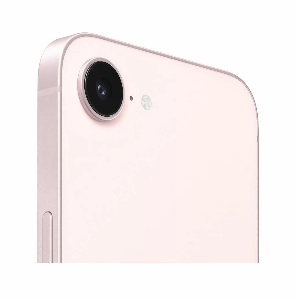 Три цвета: сдержанный чёрный, чистый белый и новый Soft Pink — пастельный розовый оттенок, которого раньше не было в e-линейке. На боковой грани появилась кнопка Action Button: её можно назначить на любое действие — запуск камеры, фонарика, переводчика, визуального интеллекта или беззвучного режима. Разъём — USB-C.