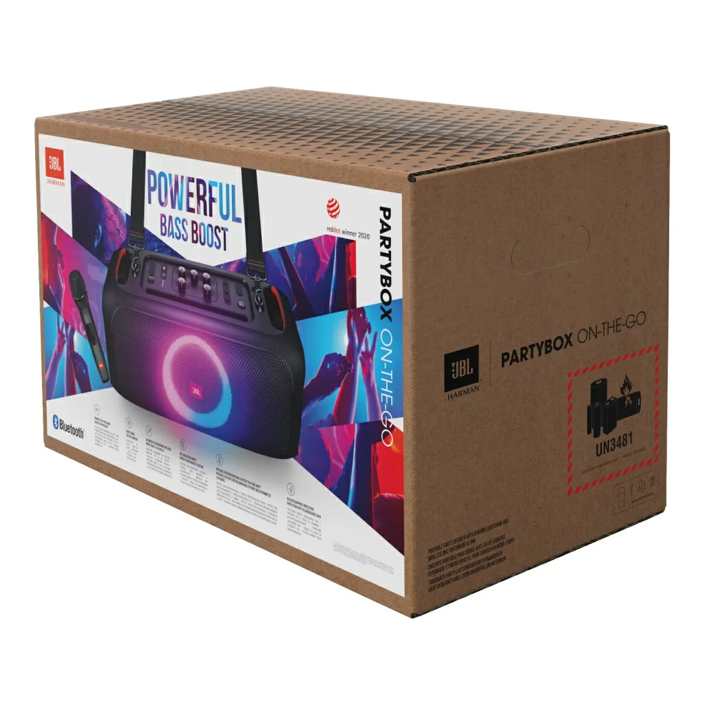 JBL PartyBox On-The-Go — это звонкие высокие, отлично проработанные средние и мощные низкие частоты, а также функция Bass Boost, чтобы задавать жару в течение всего вечера.