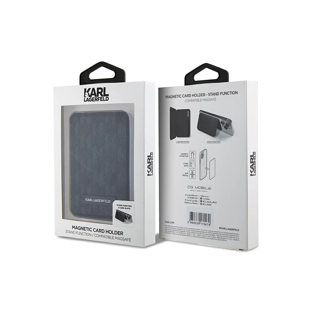 Бумажник Karl Lagerfeld поддерживает крепление Apple Magsafe. Инновационное решение позволяет легко и надежно присоединить аксессуар к задней панели вашего смартфона или установить на защитный чехол, который поставляется с магнитным кольцом MagSafe. Поверхность кошелька имитирует сафьяновую кожу, украшена монограммой в стилистике бренда. Аксессуар также можно использовать в качестве подставки.