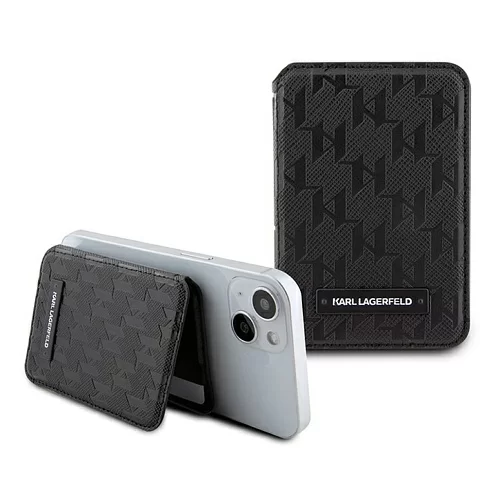 Чехол-бумажник Lagerfeld Wallet MagSafe Cardslot Stand Saffiano Monogram Plate loogo, черный