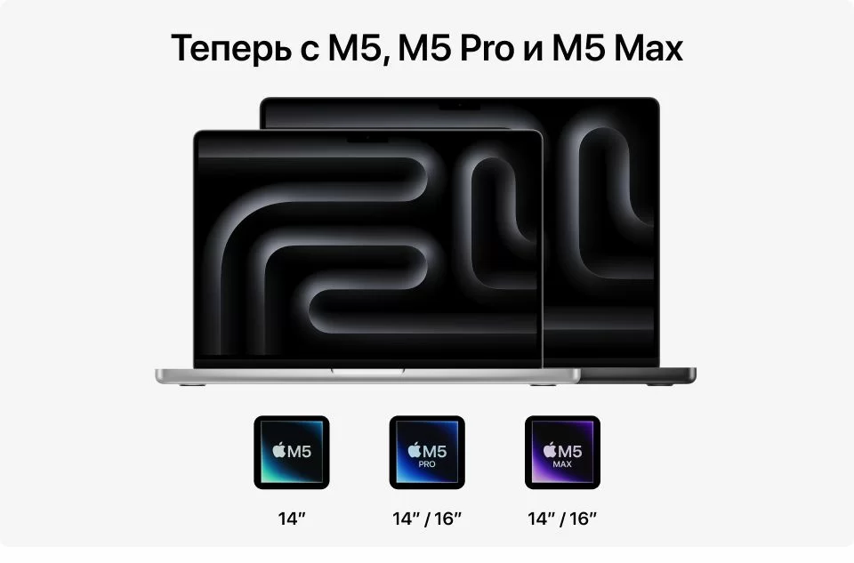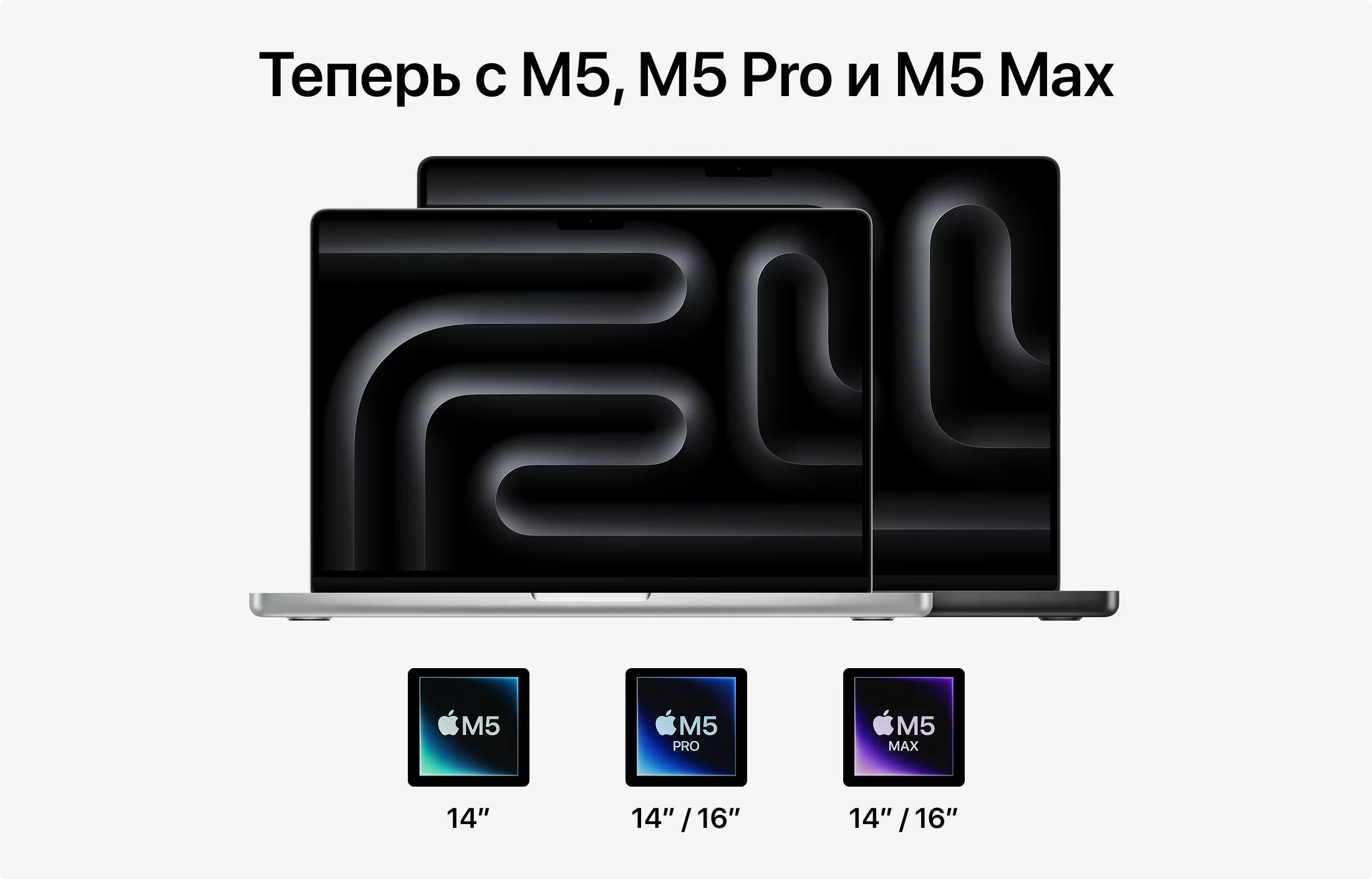 В каждом GPU‑ядре чипа M5 встроен мощный нейронный ускоритель, что существенно ускоряет ИИ‑задачи — от генерации изображений по диффузионным моделям до обработки запросов больших языковых моделей. 16‑ядерный Neural Engine отвечает за функции Apple Intelligence, обеспечивая мощный и энергоэффективный on‑device интеллект.
