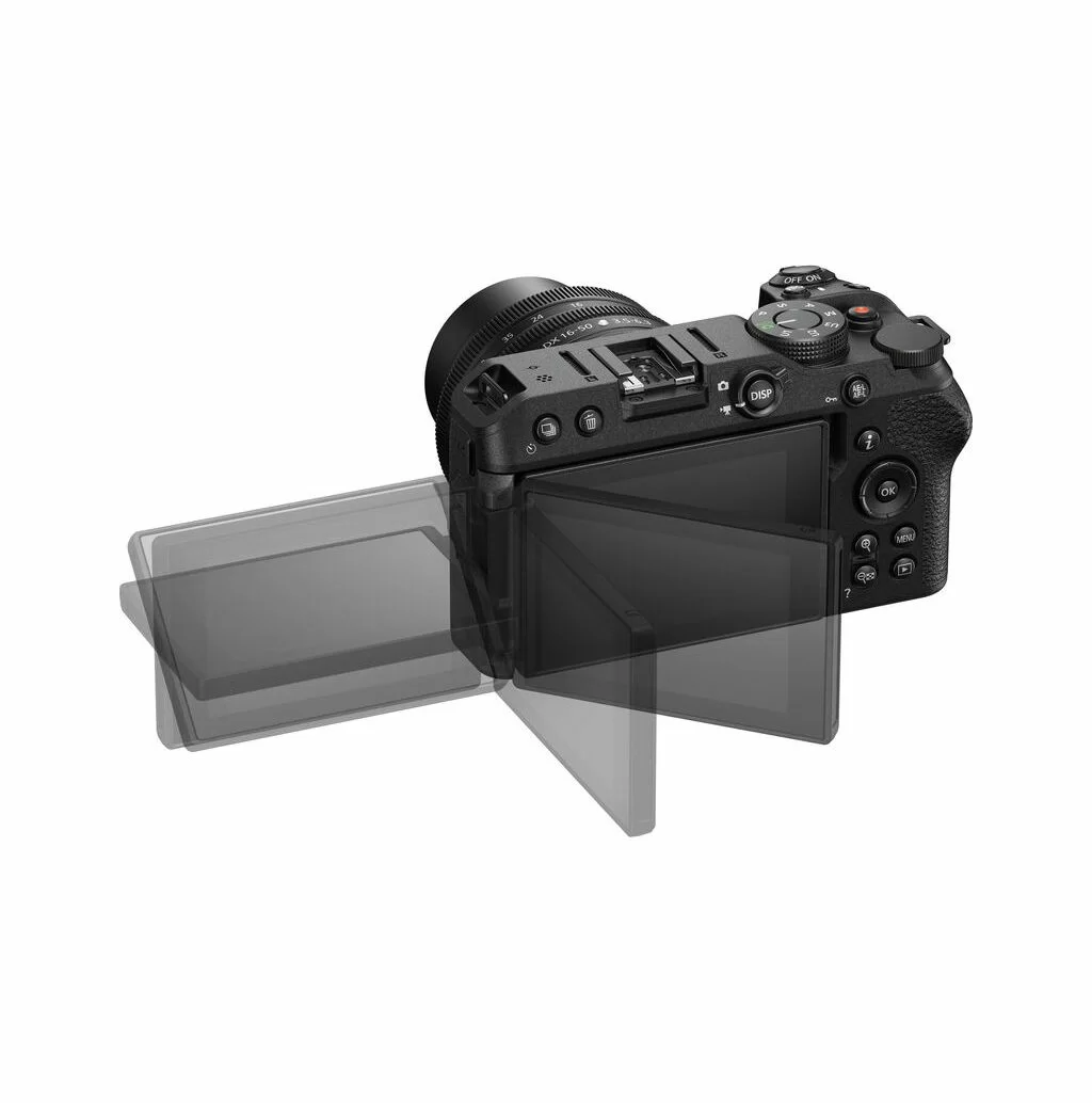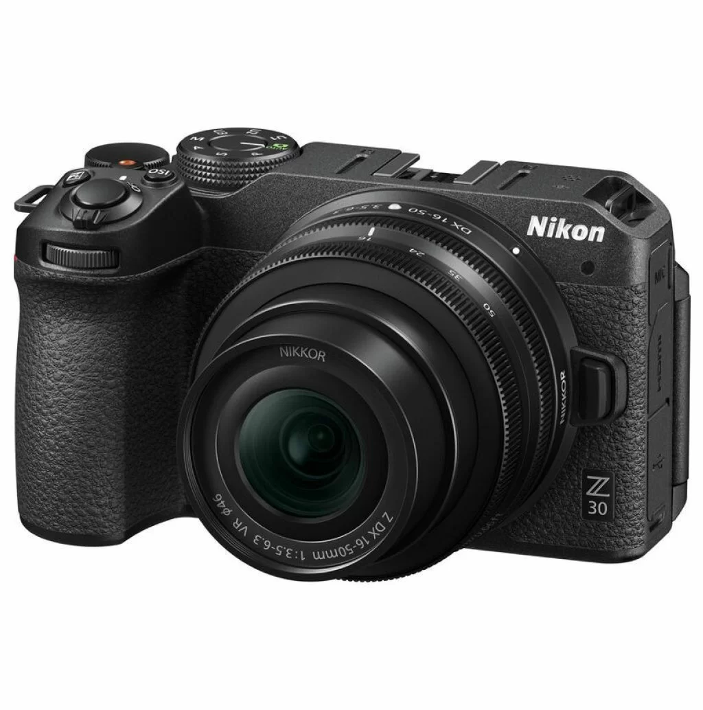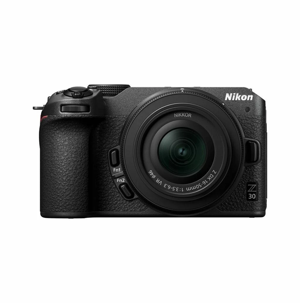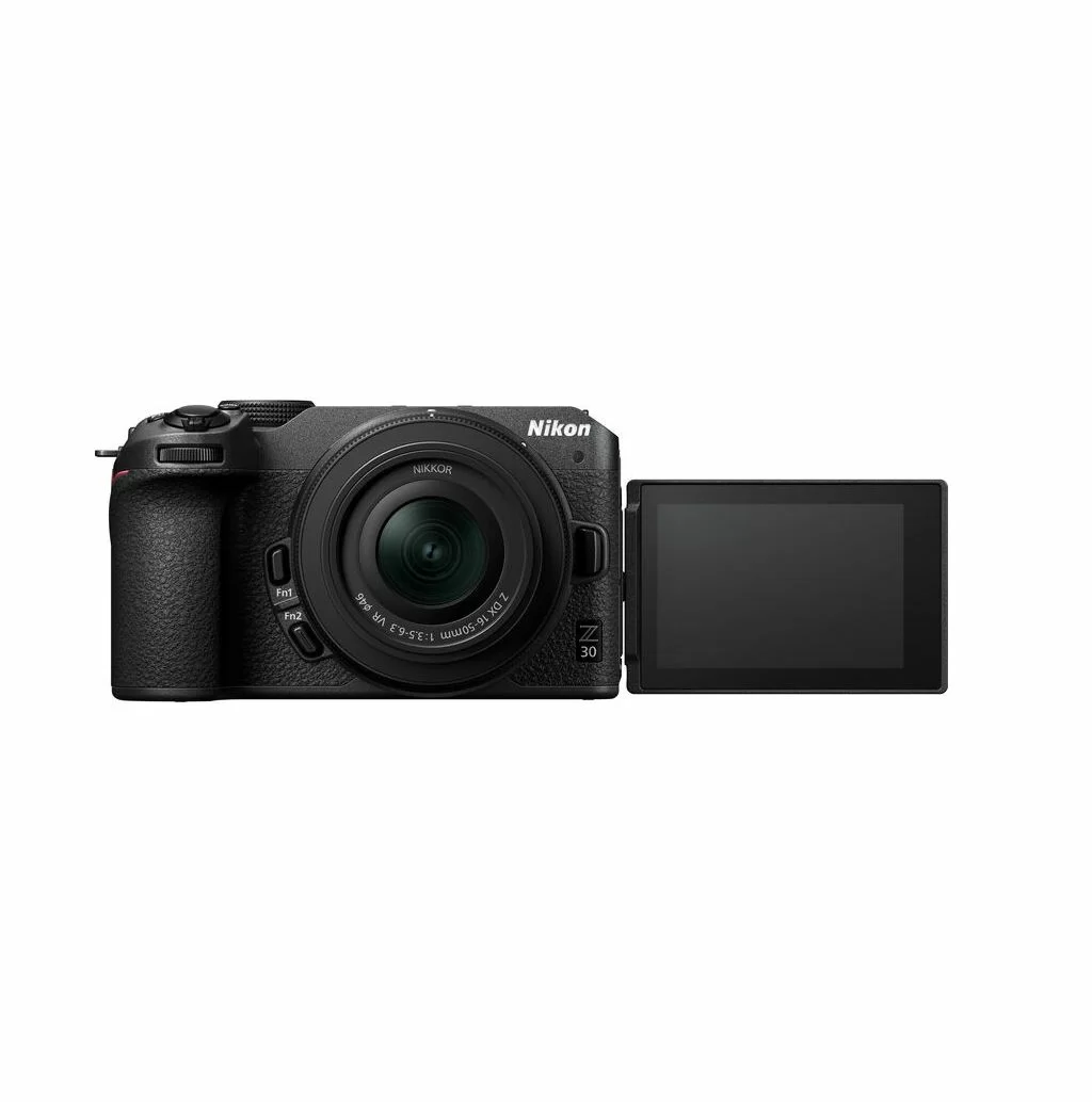 NIKON Z30 Z DX 16-50mm f/3.5-6.3 VR (kit) — это компактная беззеркальная APS-C камера, оптимизированная для видеоблогеров и создателей контента (20.9 Мп, 4K видео без кропа). В комплекте идет универсальный стабилизированный объектив. Камера имеет полностью поворотный сенсорный экран, отличный автофокус с распознаванием глаз, встроенный стереомикрофон и возможность питания через USB-C.