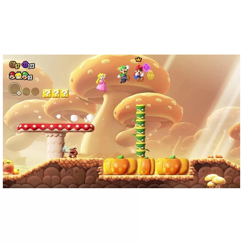 Super Mario Bros. Wonder - это совершенно новая игра, которую с нетерпением ждут все поклонники серии. Это первая в своем роде новая 2D игра Mario за последние десять лет. Благодаря возможностям Nintendo Switch игра выглядит более яркой и визуально насыщенной, чем ее предшественники, а уровни теперь имеют более изобретательный дизайн. В игре представлены новые усилители, а также больше играбельных персонажей, чем когда-либо прежде.