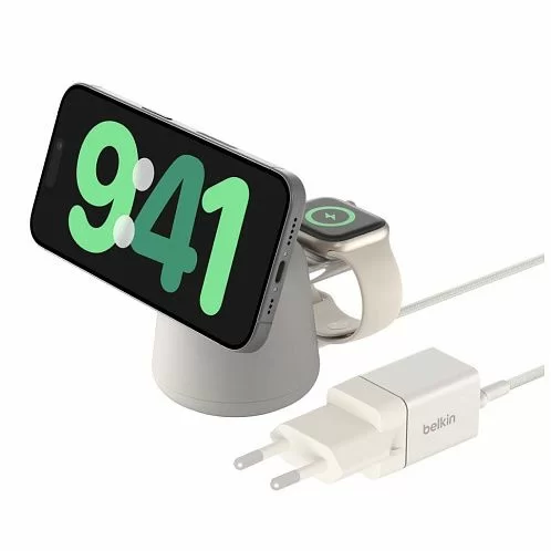 Беспроводное зарядное устройство Belkin BoostCharge Pro 2 в 1, Ladestation MagSafe,15W, белый (EU)