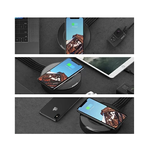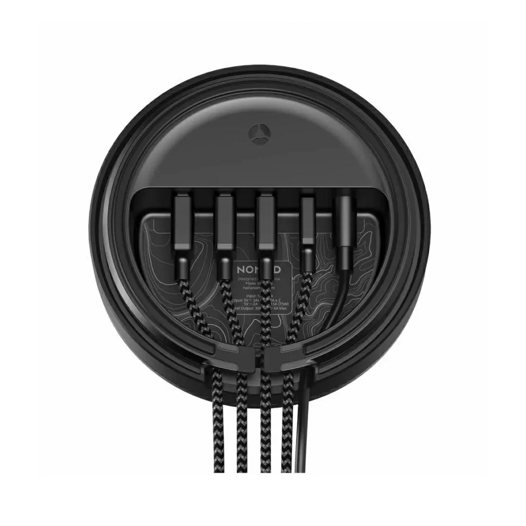 Nomad Wireless Hub сочетает в себе многофункциональную зарядную станцию. С помощью этой станции вы сможете заряжать одно устройство по беспроводной сети и до 4 проводных устройств. Nomad Wireless Hub имеет 3 выхода USB-A и один USB-C для проводной зарядки на других ваших устройствах, которые не поддерживают беспроводную зарядку. Вы можете одновременно заряжать до 5 устройств: одно беспроводное и четыре проводных с соответствующими кабелями (не входят в комплект). Вы можете заряжать свои Apple Airpods по беспроводной сети, если у вас есть для них чехол для беспроводной зарядки.