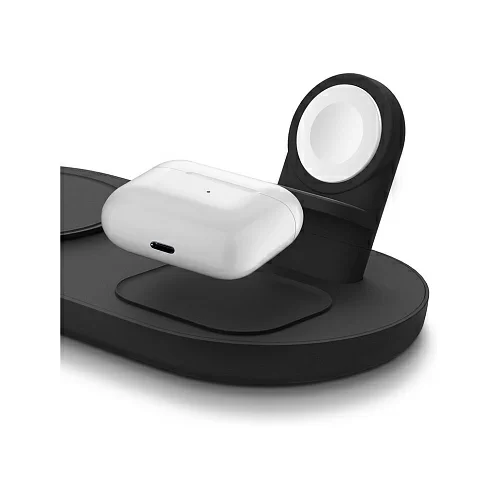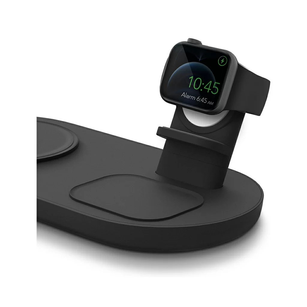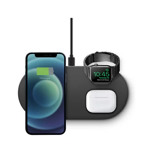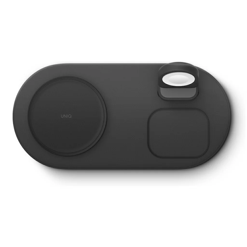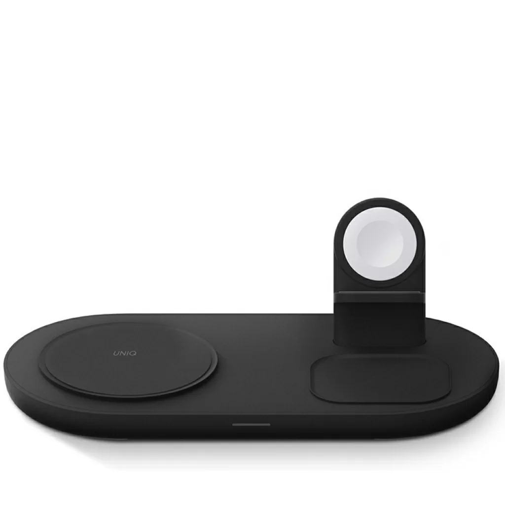 Беспроводная док-станция Uniq Aereo Mag 3-in-1 для одновременной зарядки iPhone, беспроводных наушников AirPods и смарт-часов Apple Watch на одной платформе. Совместимый с MagSafe модуль для быстрой зарядки iPhone. Сетевой блок питания в комплекте. Скорость зарядки с Uniq Aereo Mag на 40% выше по сравнению с другими беспроводными зарядными устройствами. Модуль беспроводной зарядки для часов Apple Watch в комплект не входит.