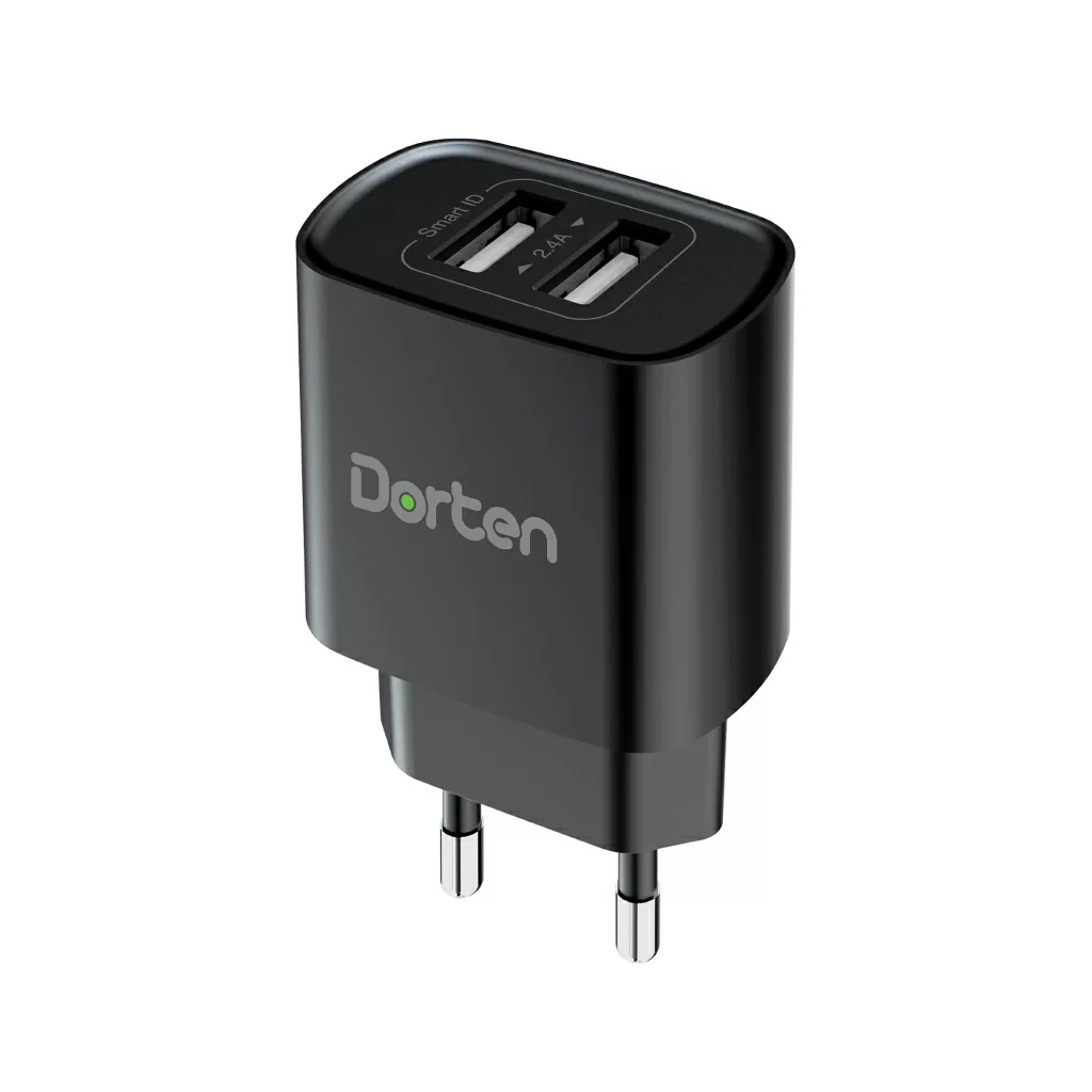 Сетевое зарядное устройство Dorten 2-Port USB Smart ID 12W Wall QC 2.4A, черный