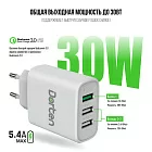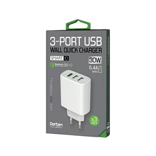 Сетевое зарядное устройство Dorten 3-Port USB Smart ID 30W Wall Quick Charger: QC3.0+2.4A, белый