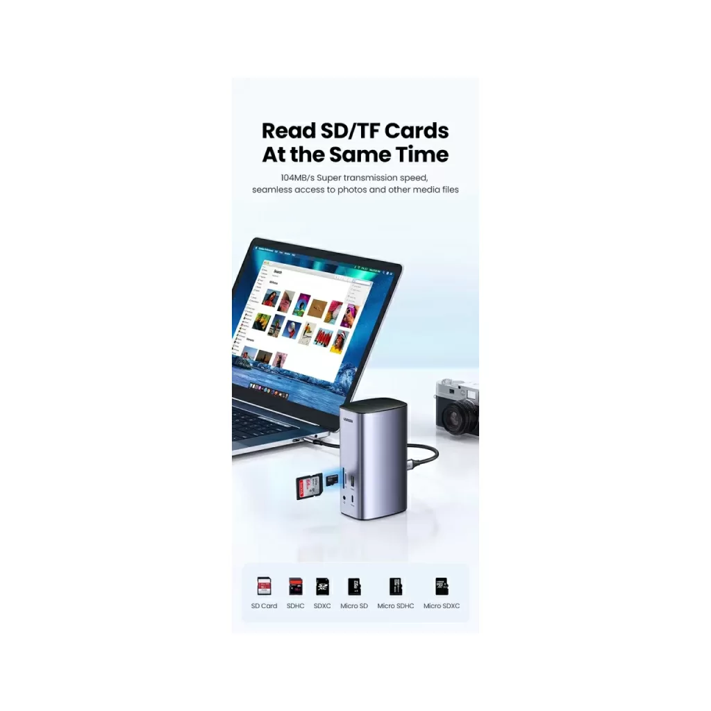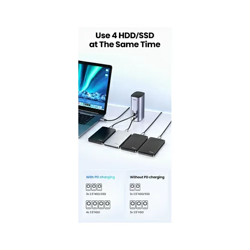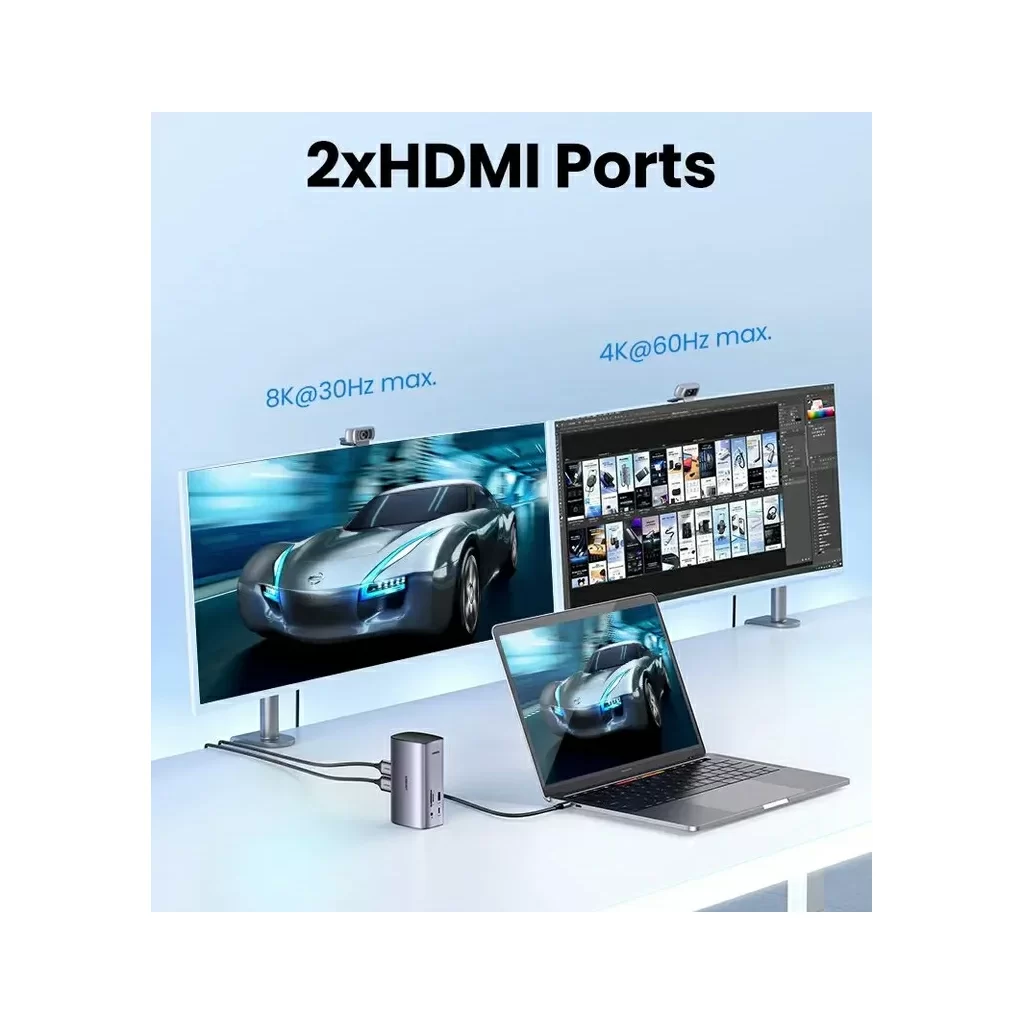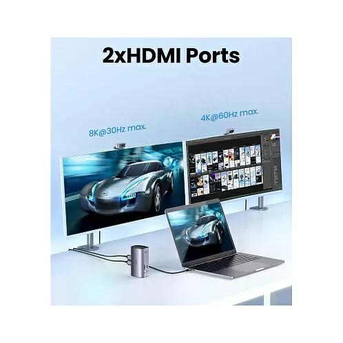Док-станция UGREEN для MacBook совместима с системами ОС Windows и macOS, включая Macbook M1 M2, и позволяет расширить экраны до трех разных дисплеев. Эта док-станция имеет самое высокое разрешение экрана на рынке.