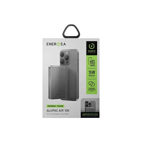 Внешний аккумулятор EnergEA AluPac Air 10K MagSafe, 10000 мАч 15W, Ultra Light Aluminium, серый