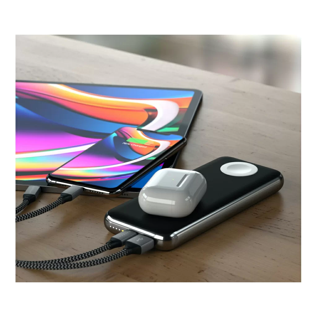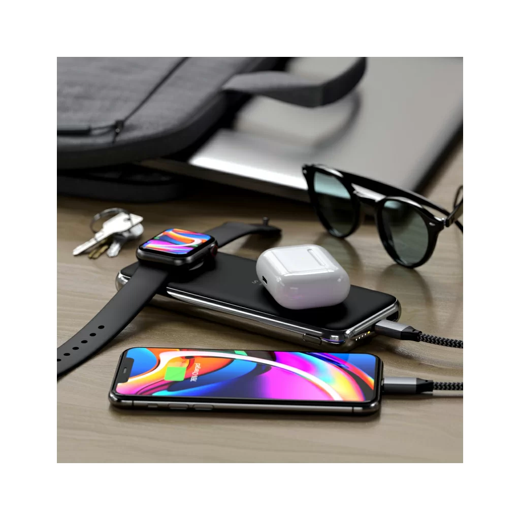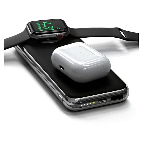 Satechi стремится создавать продукты, которые не только предлагают высочайшую функциональность, но также выглядят изящно и современно. Бренд не жертвует дизайном в пользу производительности и работает над тем, чтобы предлагать продукты, сочетающие в себе максимально высокие характеристики обоих качеств. Внешний аккумулятор с беспроводной зарядкой Satechi может заряжать сразу три ваших устройства Apple одновременно. А его ёмкости 10000 мАч хватит, чтобы полностью зарядить iPhone 11 до двух раз. Аккумулятор Satechi Quatro выполнен из прочного пластика, имеет гладкую поверхность, он универсален и компактнен. Поэтому легко поместится в любую сумку и очень кстати окажется при вас в самый подходящий момент! Производитель рекомендует заряжать не более трех устройств одновременно!