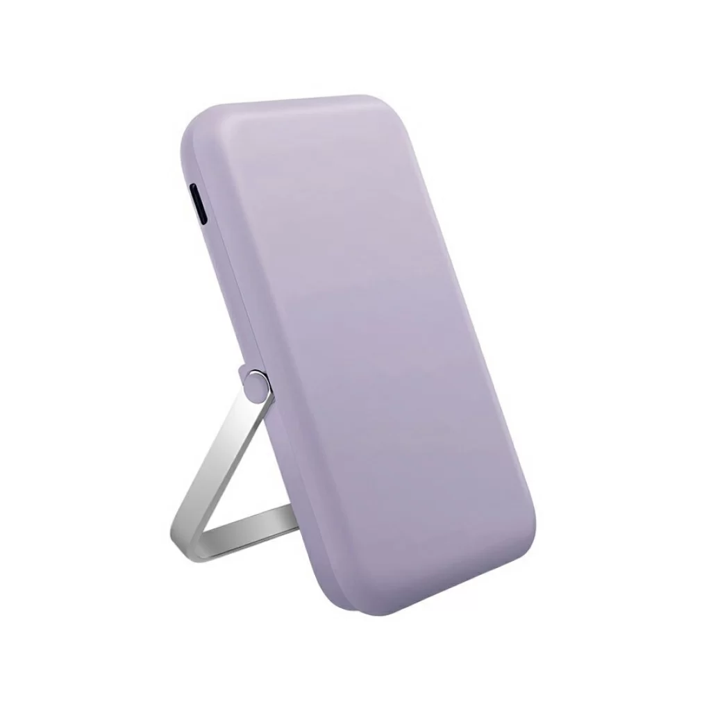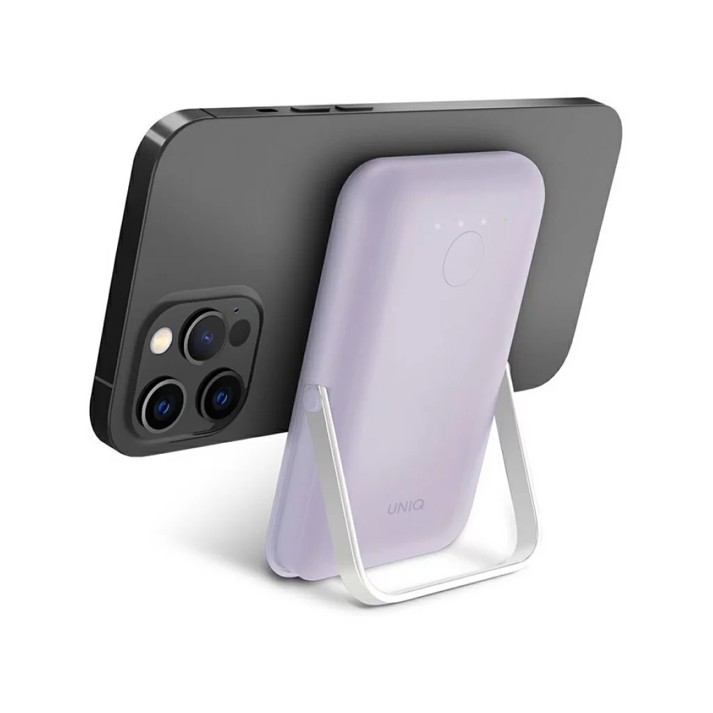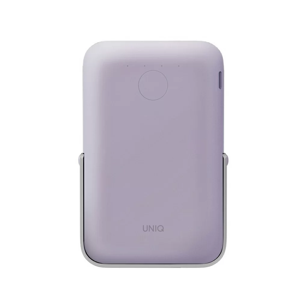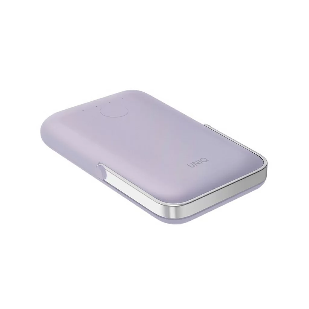 Внешний аккумулятор Uniq HOVEO 5000W, беспровод 15W, провод USB-C 20W, подставка, лавандовый