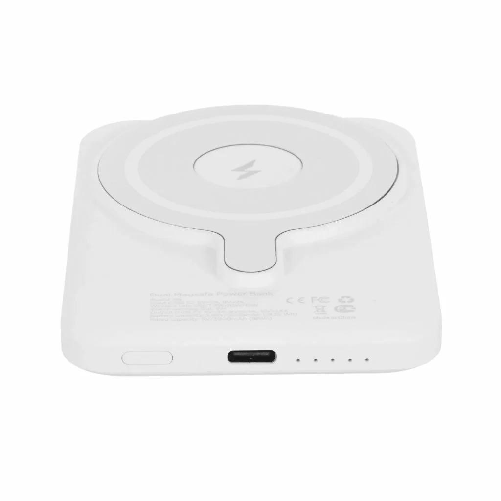 VLP Dual Magsafe PowerBank — это стильный и компактный внешний аккумулятор белого цвета, разработанный специально для пользователей устройств Apple и других гаджетов с поддержкой беспроводной зарядки.