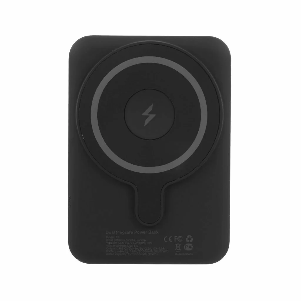 • Беспроводная зарядка MagSafe: Аккумулятор легко и надежно крепится к задней панели совместимых устройств (например, iPhone 12 и новее) благодаря встроенным магнитам. Обеспечивает беспроводную зарядку мощностью до 15 Вт.