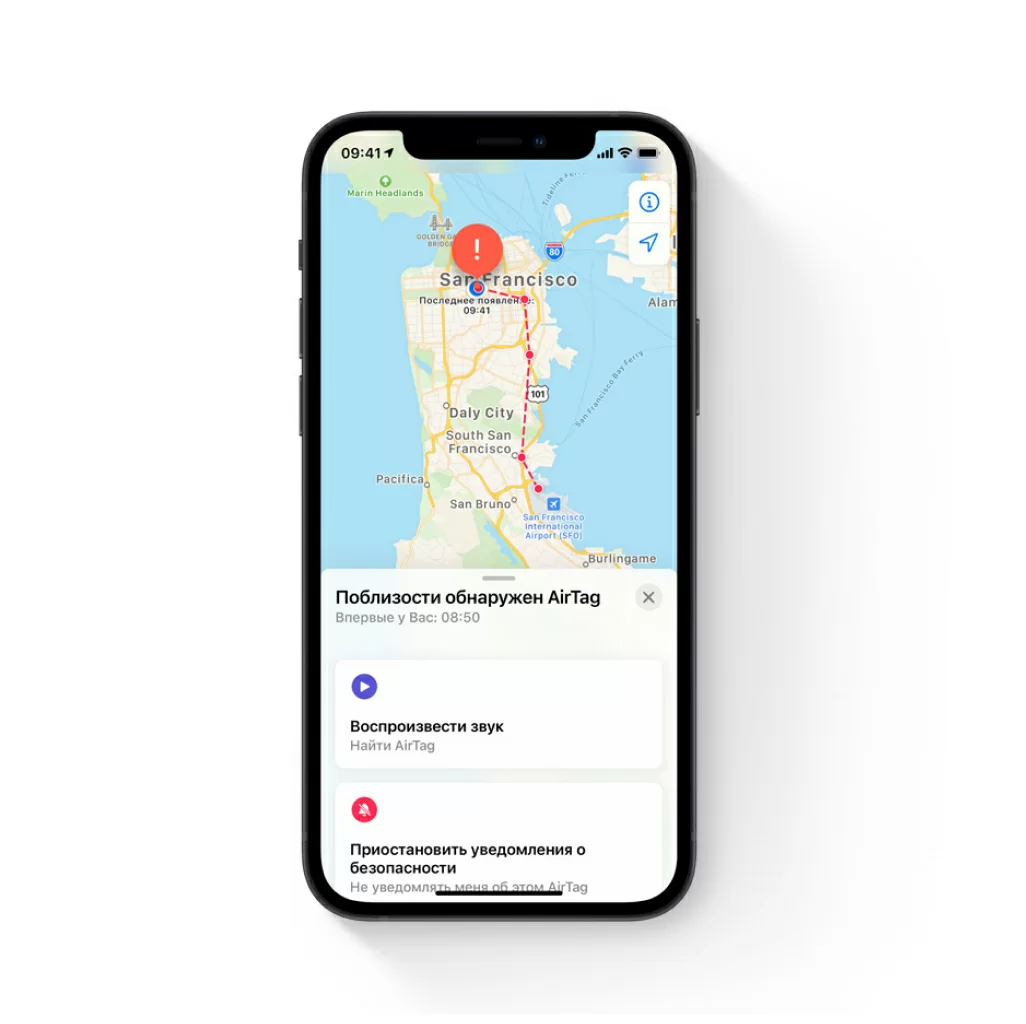 Чужой AirTag может оказаться в ваших вещах. И если он начнёт перемещаться вместе с вами, ваш iPhone срочно сообщит вам об этом. А чуть позже, если вы всё ещё не заметили этот AirTag, на нём будет активирован звуковой сигнал для привлечения вашего внимания.