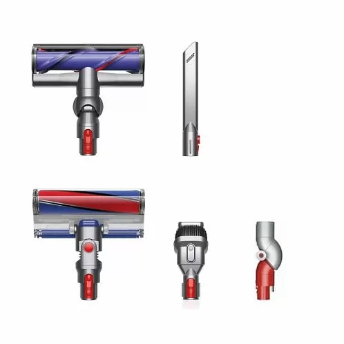 Двигатель пылесоса размещен над рукояткой, поэтому центр тяжести находится близко к руке, что облегчает уборку высоко расположенных поверхностей и труднодоступных мест. Работает на моторе Dyson V10 с цифровым управлением.