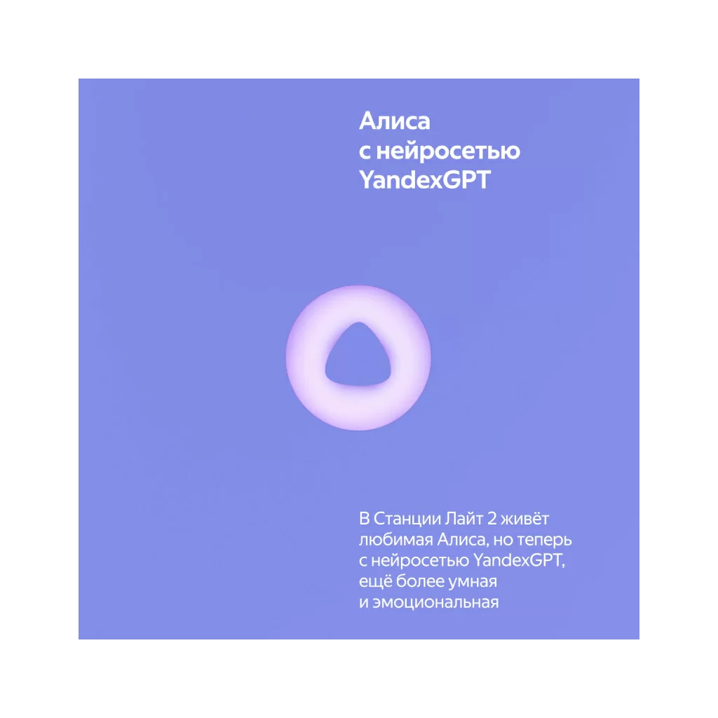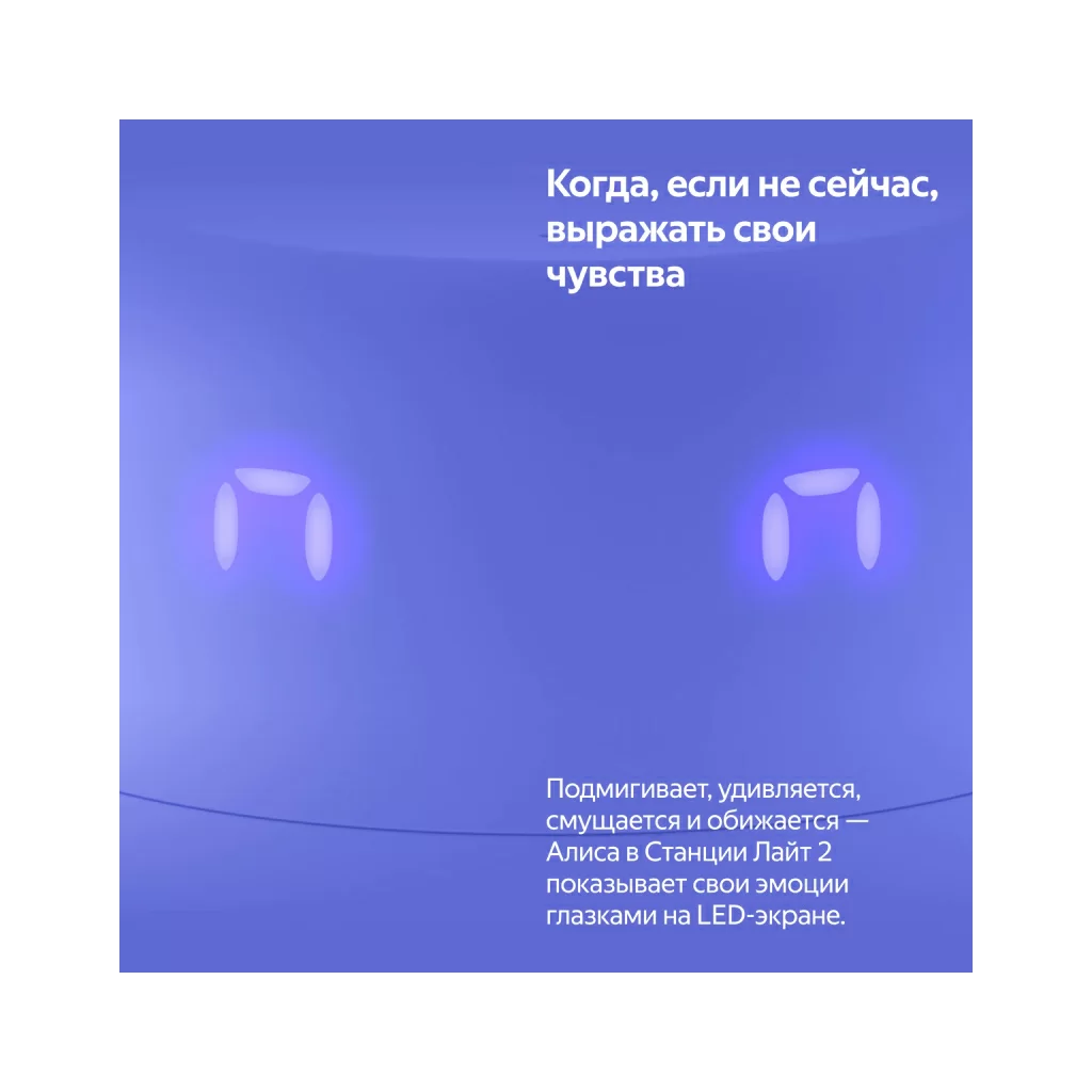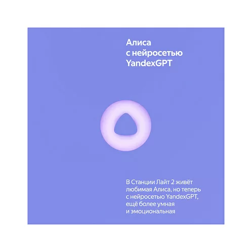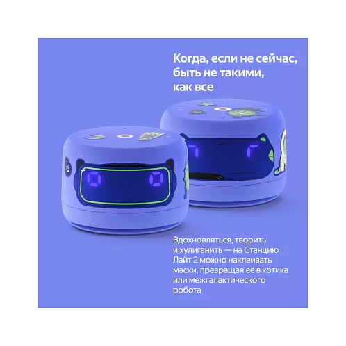 Яндекс Станция Лайт 2 — новая умная колонка для детей и тех, кто не перестаёт ими быть. Внутри живёт более эмоциональная и функциональная Алиса, с которой никогда не бывает скучно: с ней можно веселиться, делиться секретами, играть и общаться дни напролёт — она найдет ответы на миллионы вопросов, придумает идеи, предложит классные игры, включит любимую музыку. Теперь виртуальный ассистент №1 подстраивает интонацию под ваше настроение и показывает свои эмоции с помощью глазок на LED-экране Станции. В наборе — классные стикеры и маски, чтобы у ребёнка было пространство для творчества.