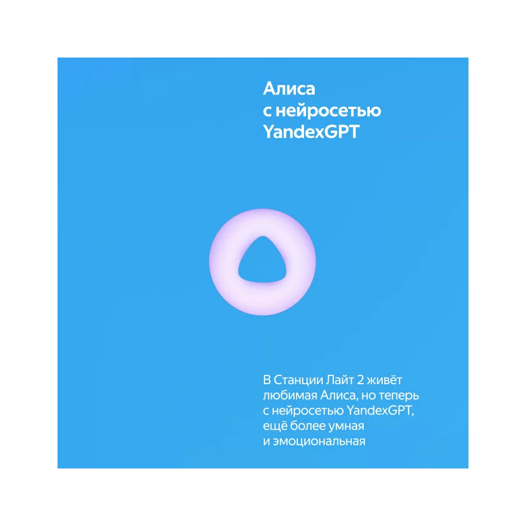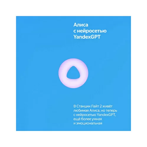 Яндекс Станция Лайт 2 — новая умная колонка для детей и тех, кто не перестаёт ими быть. Внутри живёт более эмоциональная и функциональная Алиса, с которой никогда не бывает скучно: с ней можно веселиться, делиться секретами, играть и общаться дни напролёт — она найдет ответы на миллионы вопросов, придумает идеи, предложит классные игры, включит любимую музыку. Теперь виртуальный ассистент №1 подстраивает интонацию под ваше настроение и показывает свои эмоции с помощью глазок на LED-экране Станции. В наборе — классные стикеры и маски, чтобы у ребёнка было пространство для творчества.
