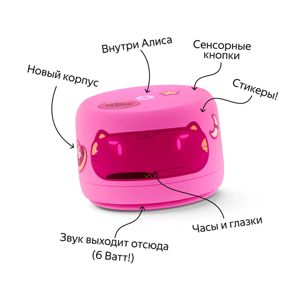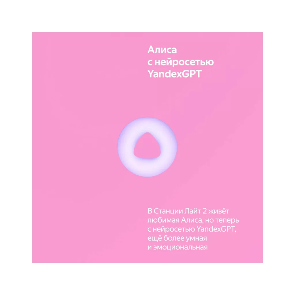 Яндекс Станция Лайт 2 — новая умная колонка для детей и тех, кто не перестаёт ими быть. Внутри живёт более эмоциональная и функциональная Алиса, с которой никогда не бывает скучно: с ней можно веселиться, делиться секретами, играть и общаться дни напролёт — она найдет ответы на миллионы вопросов, придумает идеи, предложит классные игры, включит любимую музыку. Теперь виртуальный ассистент №1 подстраивает интонацию под ваше настроение и показывает свои эмоции с помощью глазок на LED-экране Станции. В наборе — классные стикеры и маски, чтобы у ребёнка было пространство для творчества.