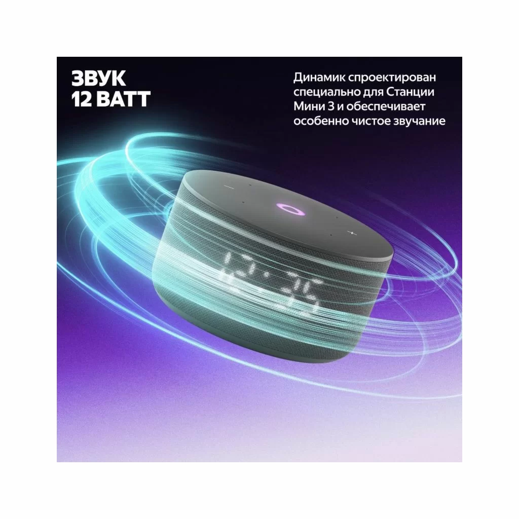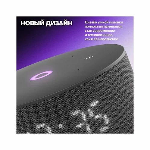 Благодаря более мягкой, цельной и гармоничной форме корпуса Станция Мини 3 отлично смотрится в любом современном интерьере. Цветовая палитра умной колонки тоже обновилась: можно выбрать классические чёрный и серый, а для ценителей акцентов подойдёт пастельный фиолетовый оттенок.