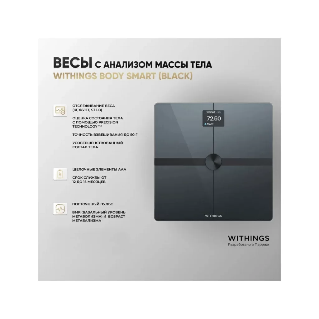 Беспроводные весы Withings Body Smart с анализом массы тела, черный